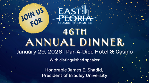 Join the East Peoria Chamber of Commerce for our 46th Annual Dinner on January 29, 2026, as we celebrate the successes of our members and the strength of the East Peoria area community.